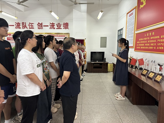 6月27日,数学与计算机科学学院在七教301党员活动室举行新发展党员入党宣誓仪式,学院党委书记、学生党支部书记、新发展党员参加。