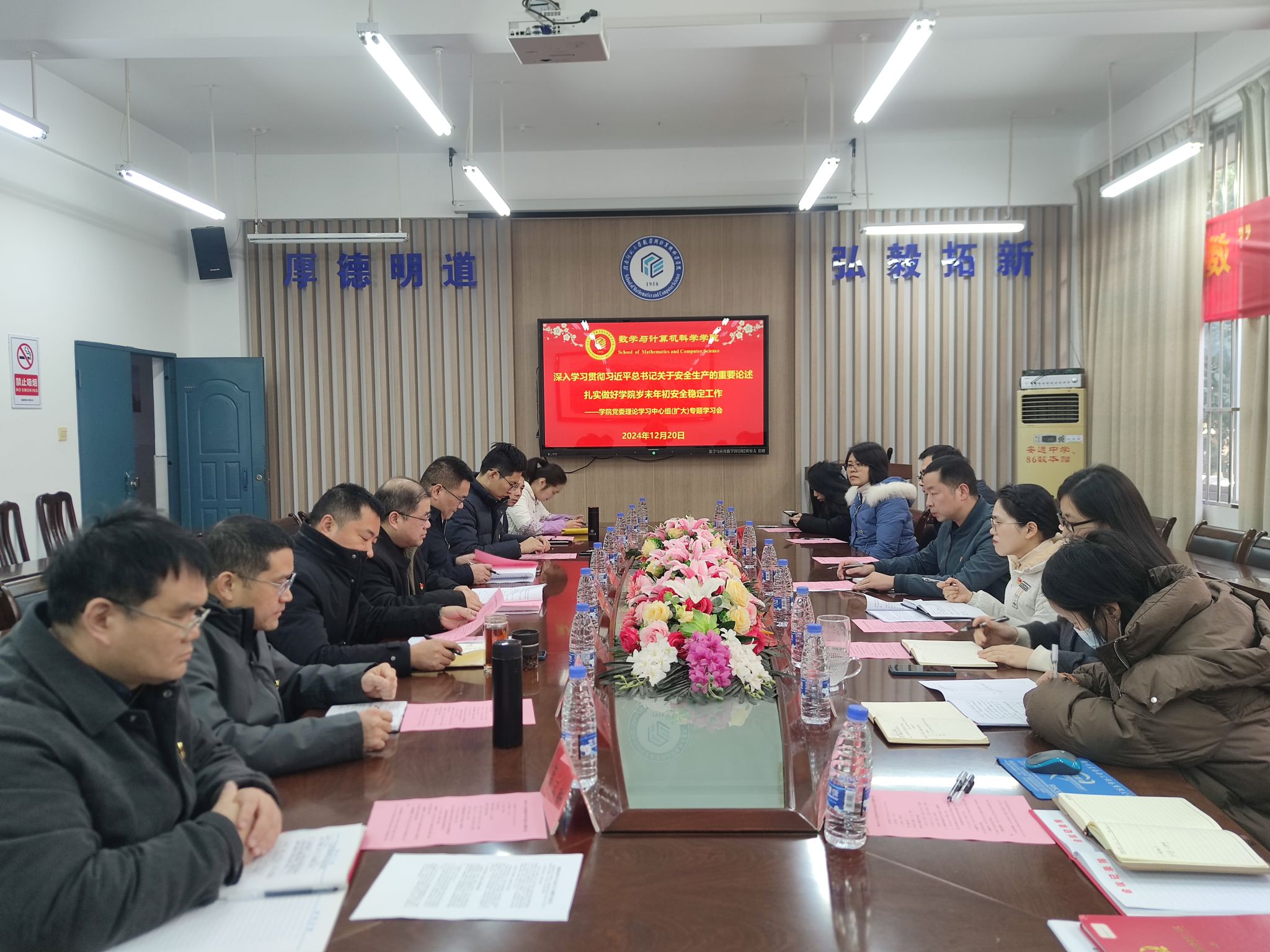 12月20日,数学与计算机科学学院在112会议室召开党委理论学习中心组(扩大)学习会议。党委书记蒋家添主持并讲话,强调要深入学习贯彻习近平总书记关于安全生产的重要论述,认真落实省委、省委教育工委对学校安全工作的部署要求,全面排查安全隐患,坚决防范遏制重大事故发生,以“时时放心不下”的责任感和“事事紧抓在手”的行动力,扎实做好学院岁末年初安全稳定工作,全力维护师生安全和校园安全稳定。