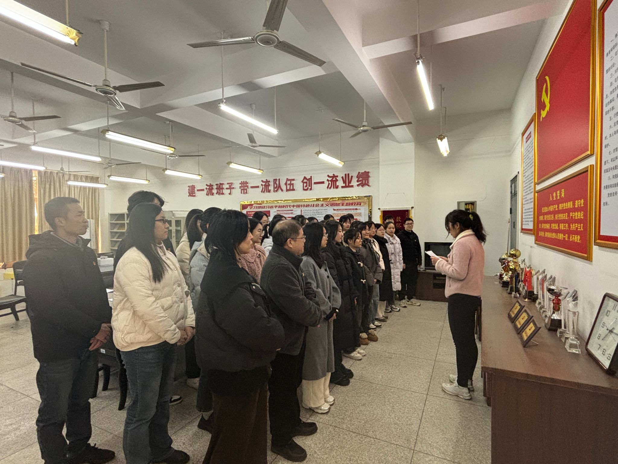 12月25日,数学与计算机科学学院在七教301党员活动室举行新发展党员入党宣誓仪式,学院党委书记、学生党支部书记、新发展党员参加。