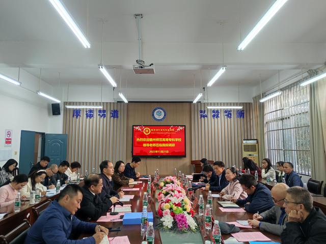 11月21日,赣州师范高等专科学校党委副书记吴虹一行来我校数学与计算机科学学院调研交流,校领导胡龙华会见来宾并座谈,党委组织部、数学与计算机科学学院负责同志参加。