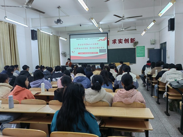 据悉,本次“党的二十大精神进学生班级”宣讲活动由学校“苏区红”大学生理论宣讲团成员盛双燕、陈欣宇、蔡鸿、肖涵、袁小然、贺金晶主讲,共宣讲8场次,近800名学生聆听宣讲会。(赖宝清供稿)
