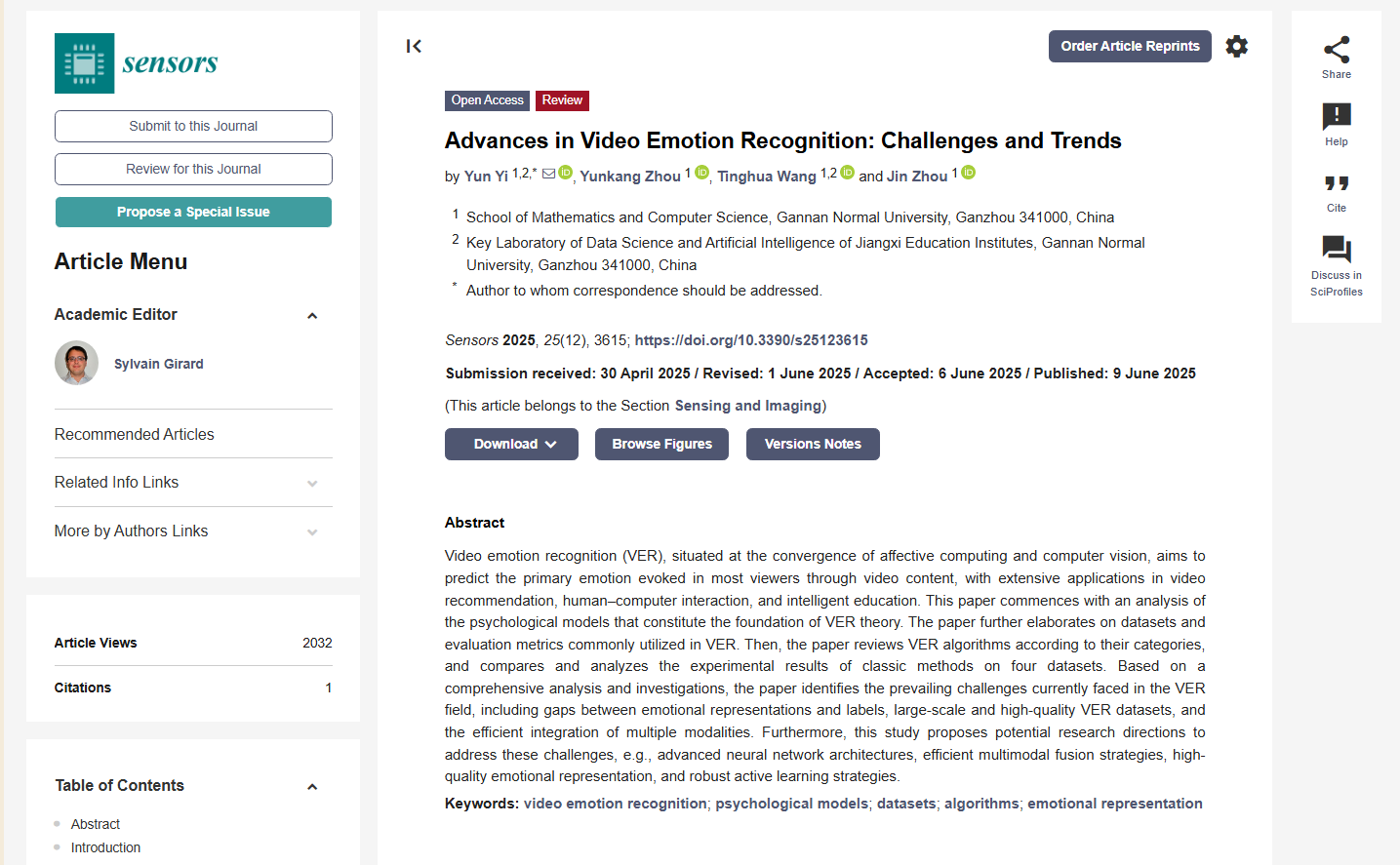 周运康同学始终保持严谨踏实的学习态度,在学业与科研中始终保持严谨进取的态度,勇于探索、勤于实践,不断拓展深度学习领域的前沿知识。在科研的探索之路上,他注重理论学习与实践应用的融合,不断拓宽科研视野,锻炼创新思维。他专注于视频情感识别方向的研究,深入探索多模态信息融合与情感特征建模等问题。凭借扎实的理论功底与创新思维,以第一作者(或导师第一作者)在中科院三区期刊发表学术论文1篇,为后续科研工作奠定了坚实基础。学习之余,他还积极参与学术交流与科研讨论,展现了新时代研究生严谨治学、追求卓越的精神风貌。