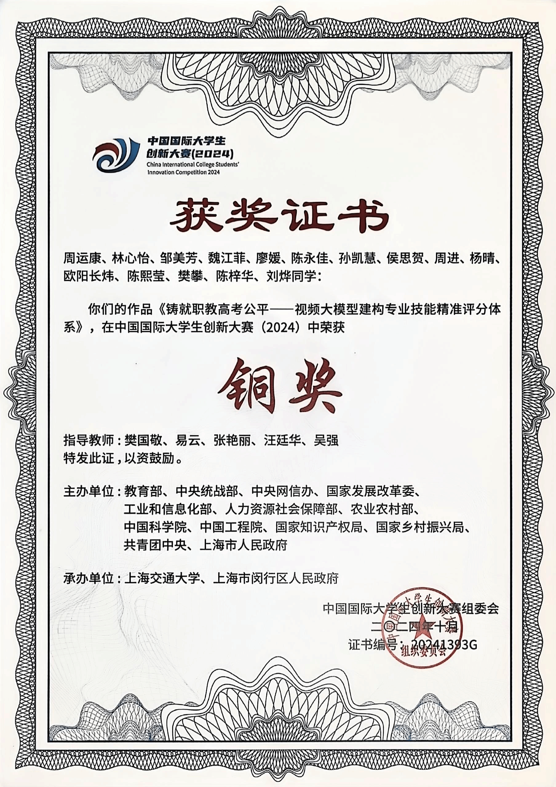 在校期间,周运康同学荣获研究生国家奖学金、江西省一等奖学业奖学金以及“文博大泽泉”创新创业奖学奖教金等多项荣誉。未来,他将继续在人工智能与深度学习领域深耕,积极投身科研创新与社会实践,用所学专业知识服务社会、助力发展,在实践中书写属于自己的青春答卷。