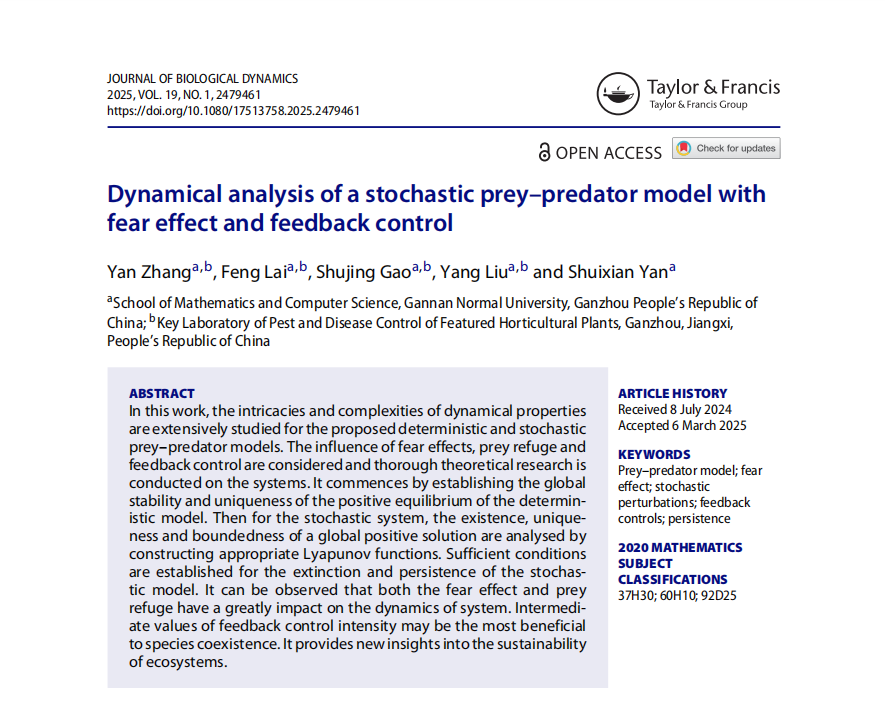 赖峰同学勤奋好学,勤于思考,潜心研究,在学术科研与竞赛领域均取得了显著成绩。因表现突出,荣获了江西省研究生一等学业奖学金等奖项。展望未来,他把目光投向了更广阔的未来,致力于将计算科学与生态学研究深度融合,通过开发实用软件工具,为解决复杂环境问题提供新方法。