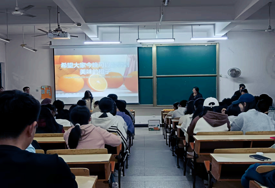 为加强与国际留学生的文化交流,给赣南脐橙助农渠道注入新活力,数学与计算机科学学院于12月4日在第七教学楼101教室举办了中外学生脐橙品尝交流大会。