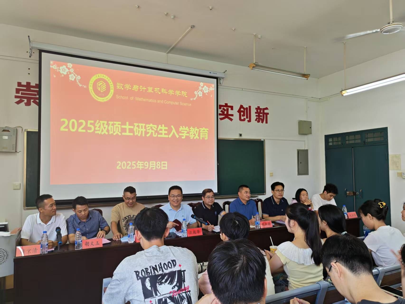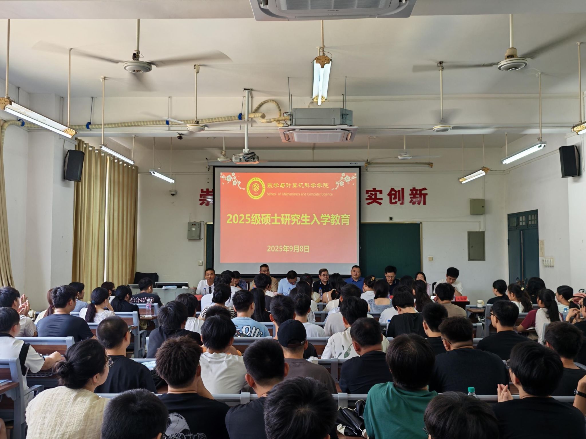 9月8日,数学与计算机科学学院在达智楼308开展2025级硕士研究生入学教育,帮助新生快速融入校园、明确目标。学院领导、学位点负责人、相关负责老师及全体研究生新生100余人参加。