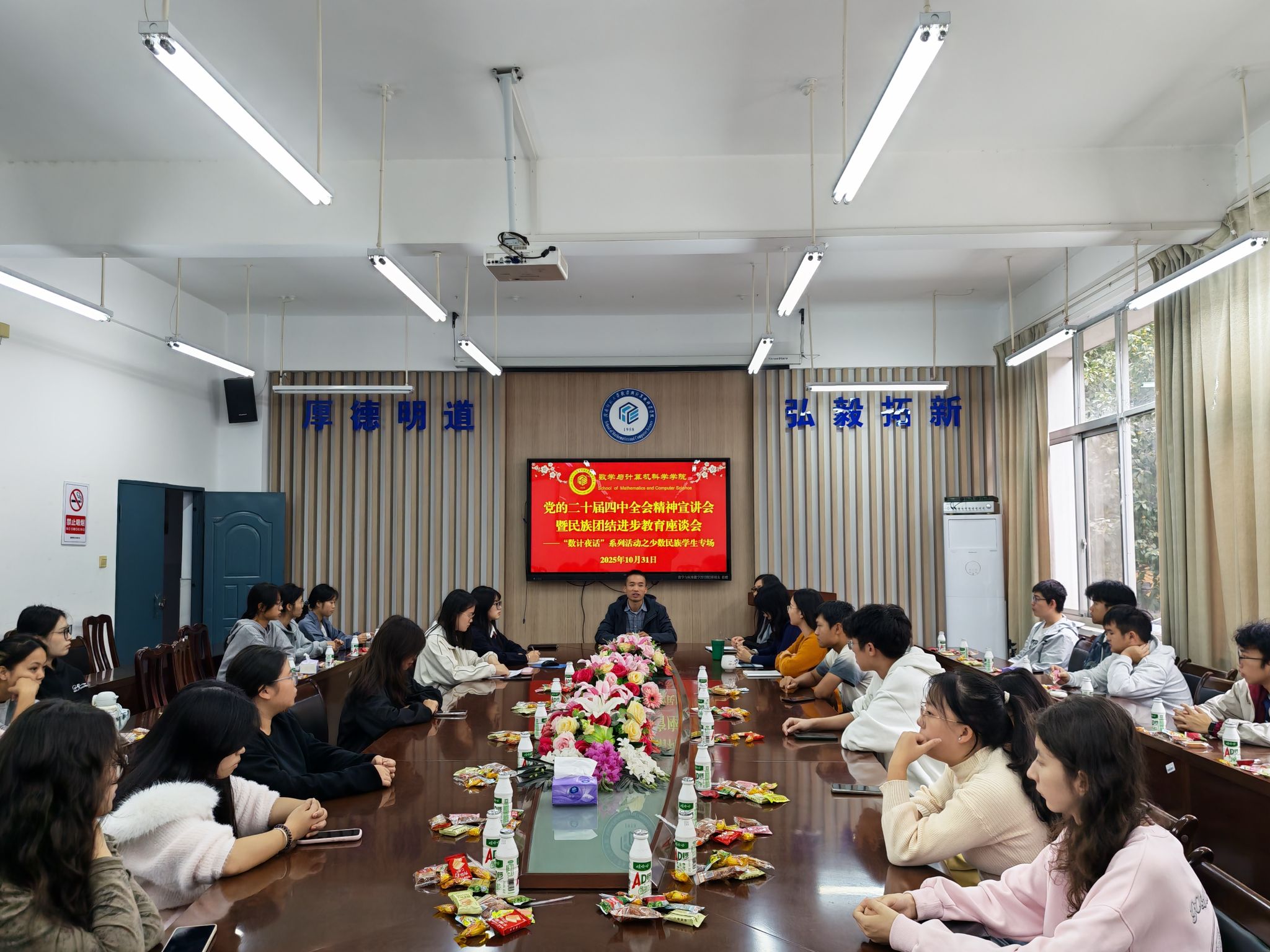 10月31日,数学与计算机科学学院在达智楼112会议室召开党的二十届四中全会精神宣讲会暨民族团结进步教育座谈会,向同学们传达学习党的二十届四中全会精神,这也是“数计夜话”系列活动之少数民族学生专场。