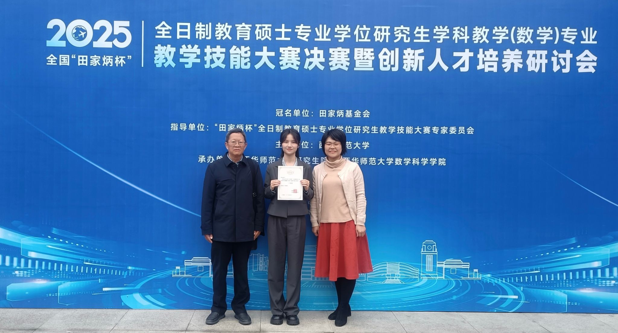 近日,2025年全国“田家炳杯”全日制教育硕士专业学位研究生学科教学(数学)专业教学技能大赛决赛在西华师范大学圆满落幕。我校数学与计算机科学学院2023级学科教学(数学)研究生谭秋美在比赛中荣获三等奖。